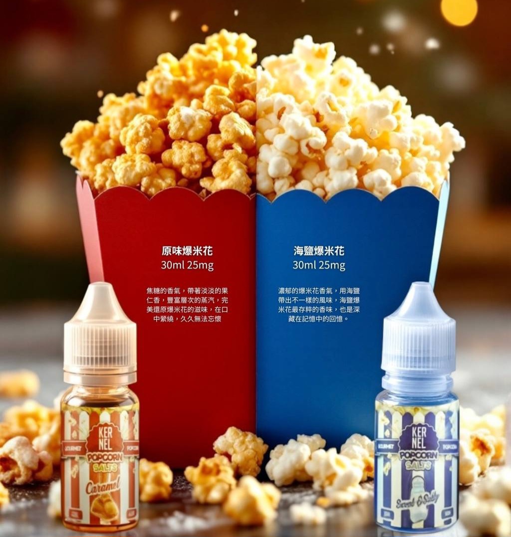 海鹽爆米花:外層撒上鹽或其他鹹味調味料,外觀更加突出,鹹香與玉米的交替形成對比。